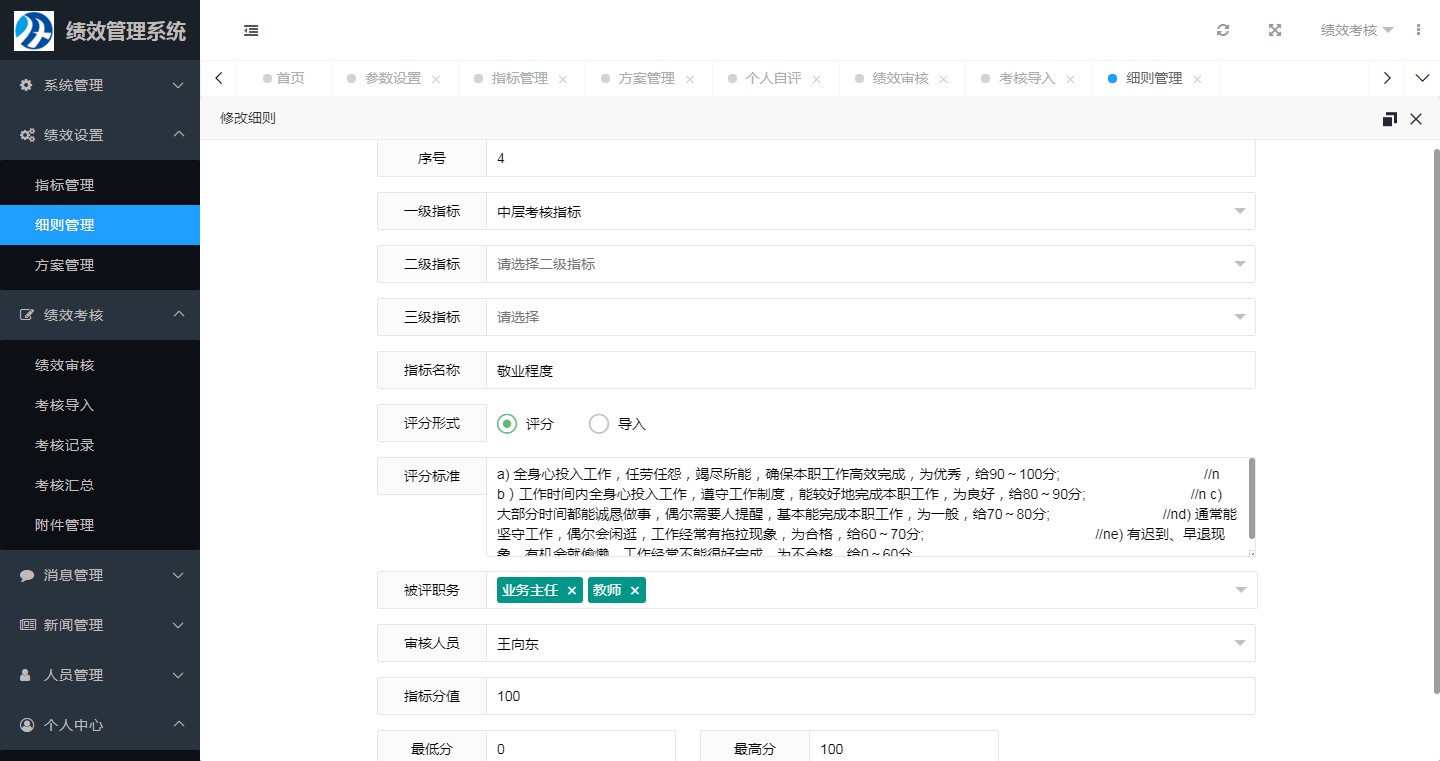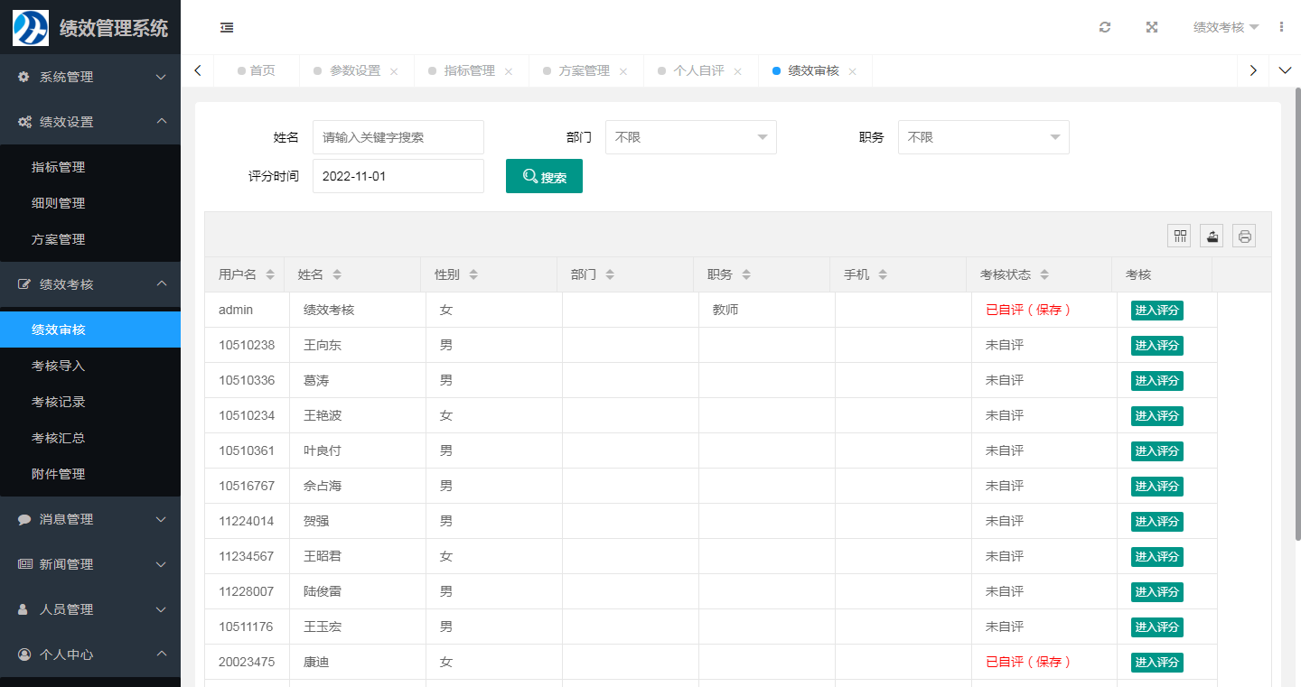 1、系統(tǒng)實(shí)現(xiàn)兩級(jí)考核,個(gè)人自評(píng)+單位審核;