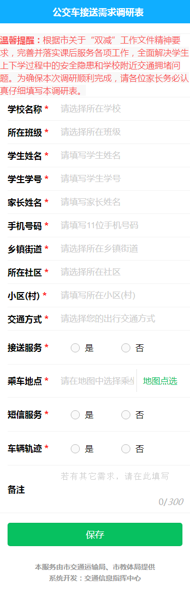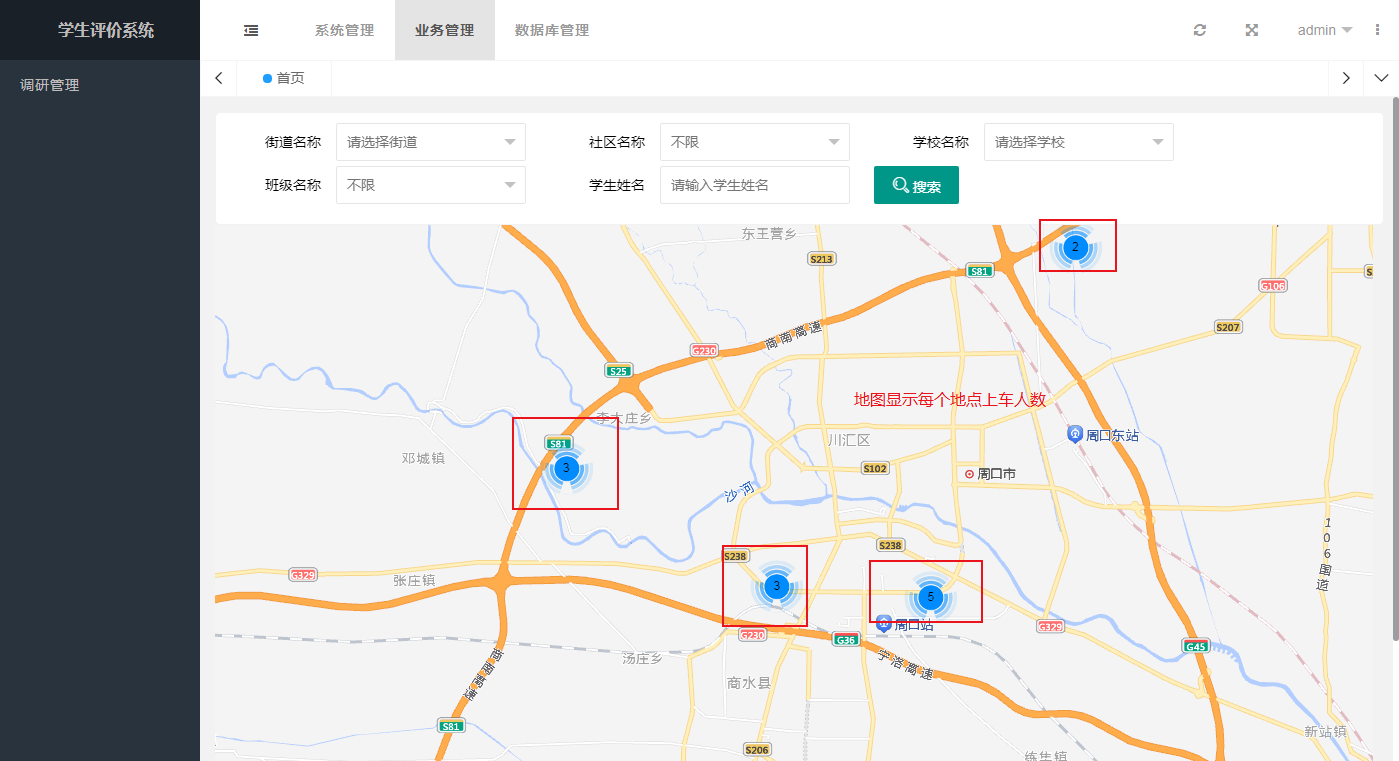 客戶定制的學(xué)生公交乘車調(diào)研系統(tǒng),實(shí)現(xiàn)用戶前臺填寫公交乘車要求,后臺匯總統(tǒng)計(jì),并在地圖上呈現(xiàn)每個(gè)乘車人員分布區(qū)域。