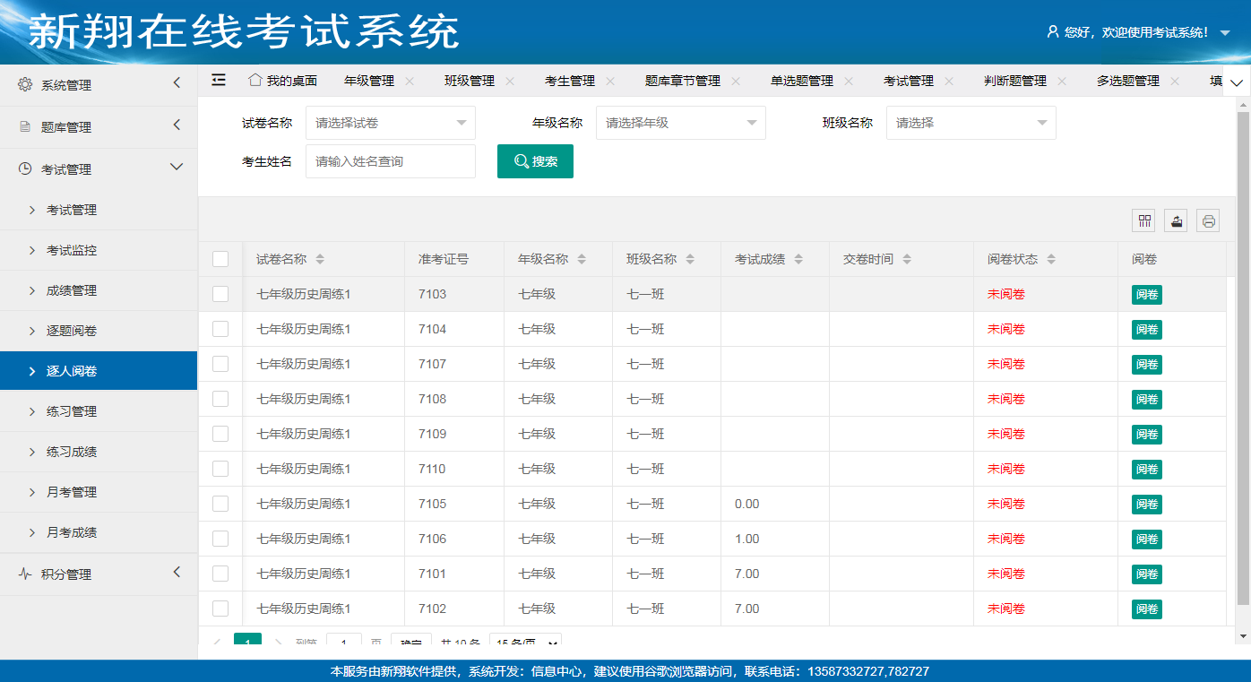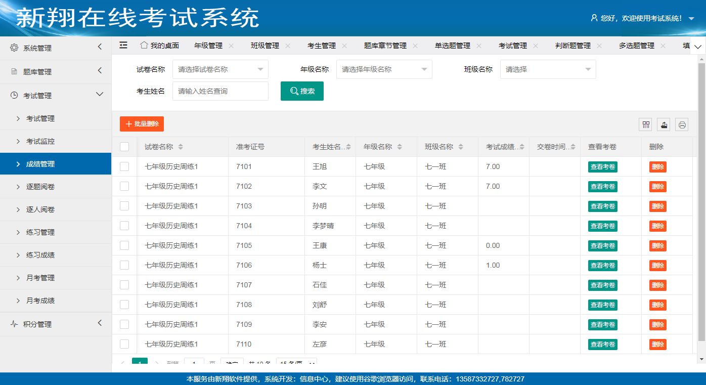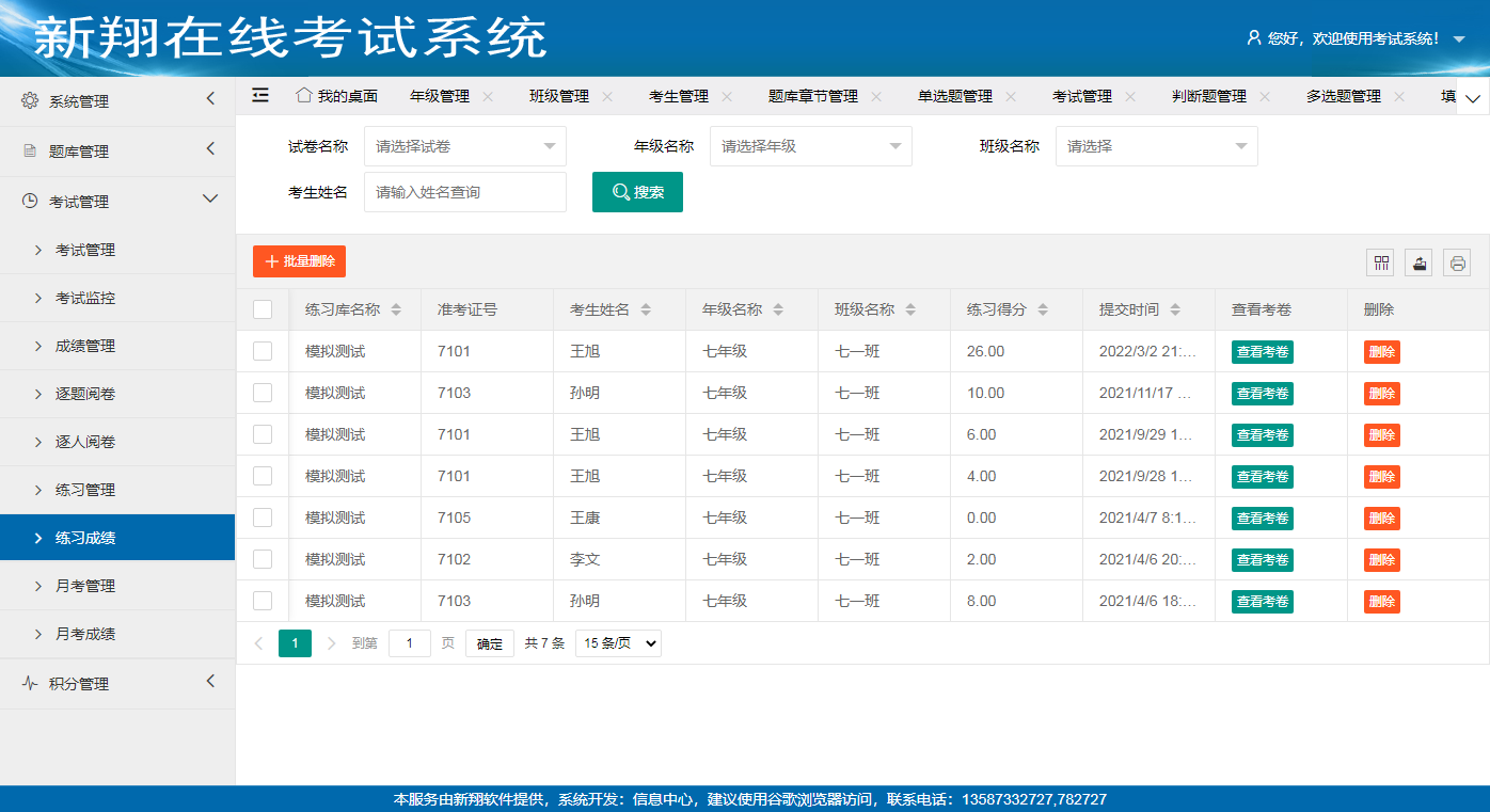 7、練習(xí)、月考管理支持隨機(jī)抽題組卷、查看成績。